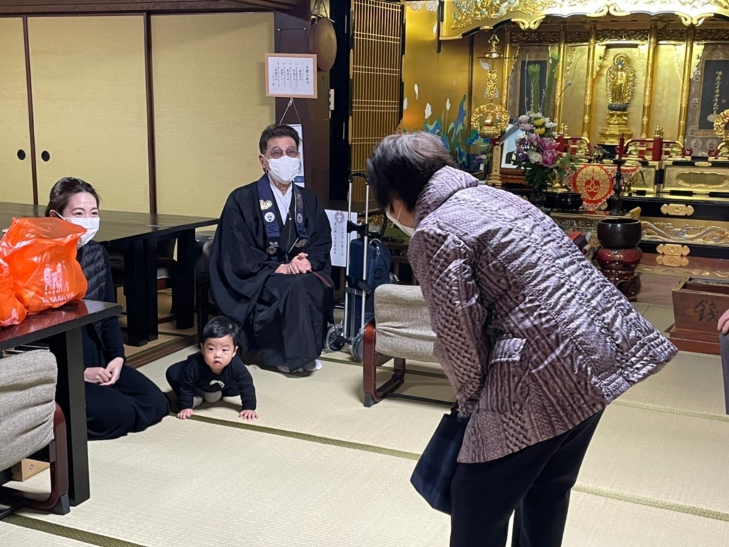 今年は副住職(若院)の長男が誕生して初めての御正忌報恩講でありました。受付では住職と一緒にお参りに来られるご門徒の方々にご挨拶をしながら、お出迎えしました。息子の初仕事です(笑) 沢山の方が喜んでくださり本当に有難いことです。