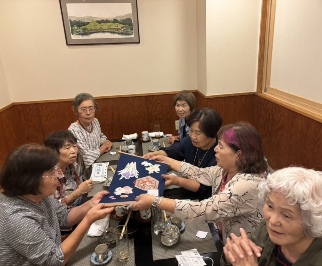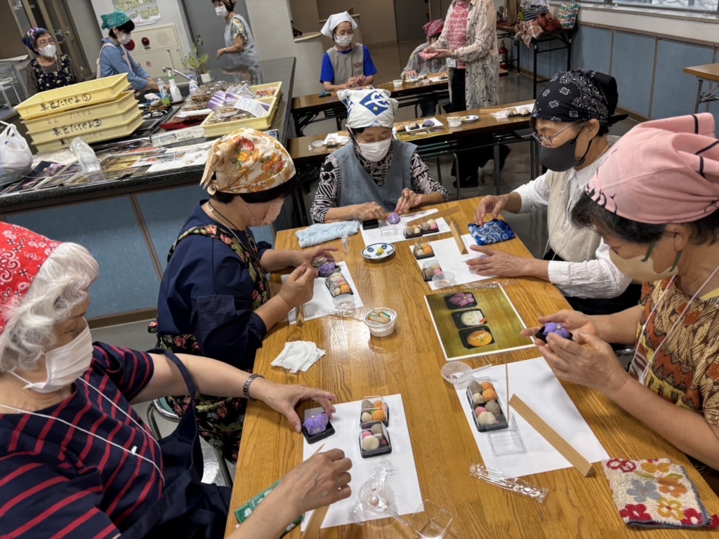 羊の肉にまつわる羊羹の由来や、和菓子の歴史や楽しいお話を交えながらの巧みな職人技に、婦人会の皆さん、わぁー!ほぉー!へぇー!と感嘆の声と笑い声。沢山の質問にも答えていただき、時間が足りなくなるほどの楽しい学びの体験で、自分の手で完成させた時の喜びは、また格別でした。