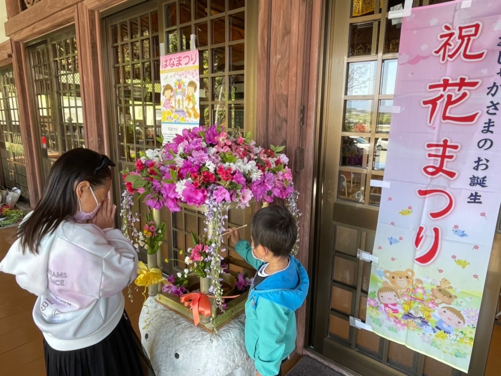 年配の方はもちろん、幼い子供たちが手を合わせ、甘茶をお釈迦様にそそいでくださる姿は、尊いものです。