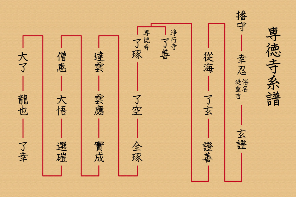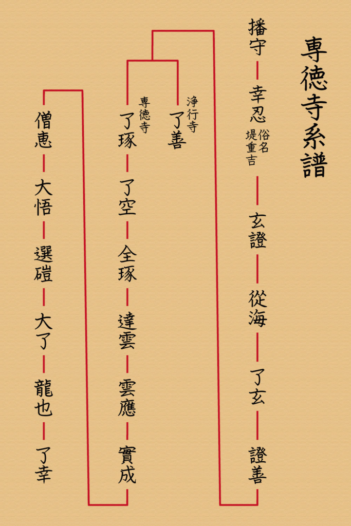 当山は戦国から江戸時代初期にかけて堤因幡守、初代釋幸忍 俗名堤重吉によって創建され約400年となります。現在中央区に位置します浄行寺と兄弟寺院として生まれました。専徳寺開祖は第六世釋了琢です。